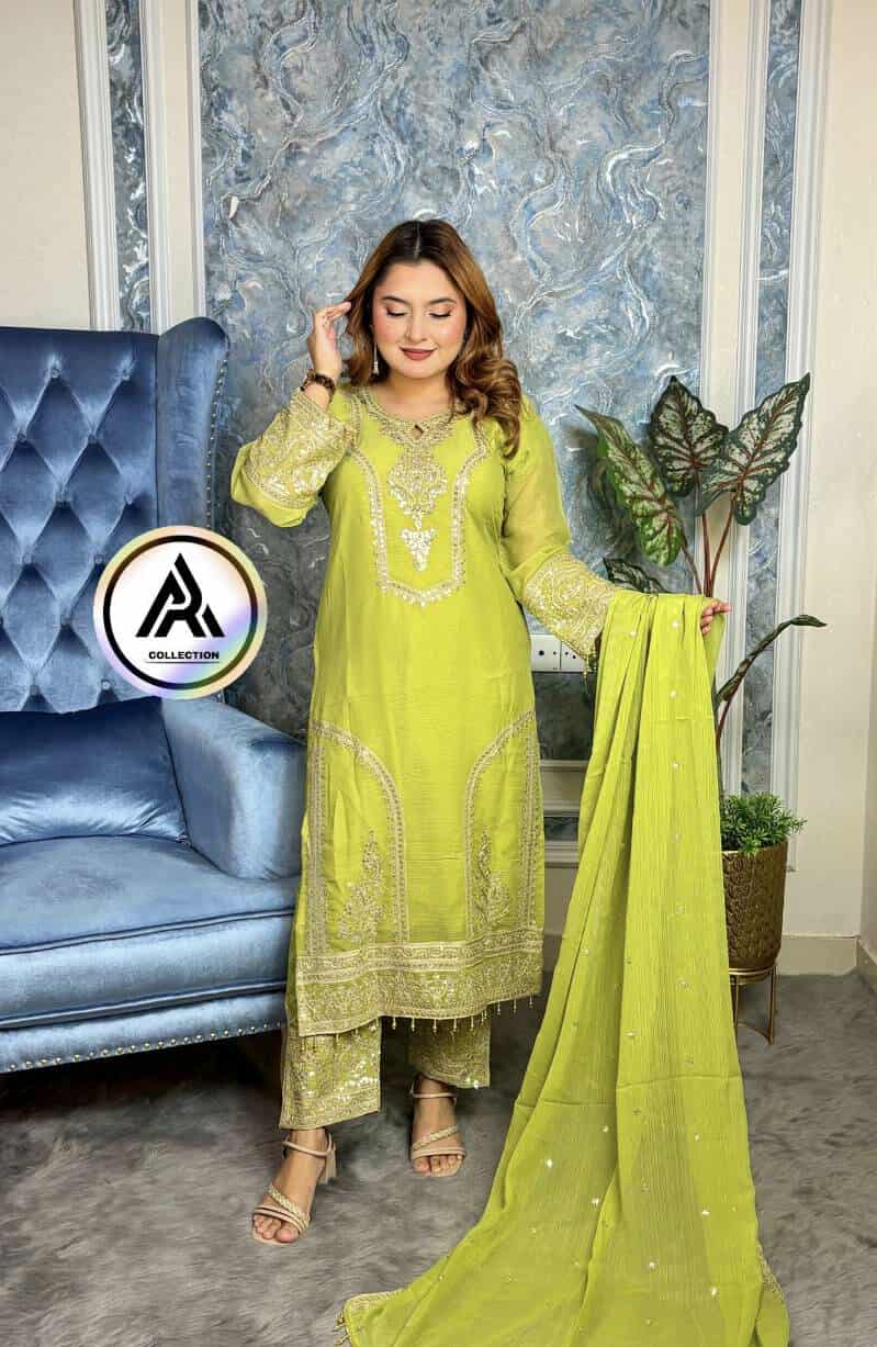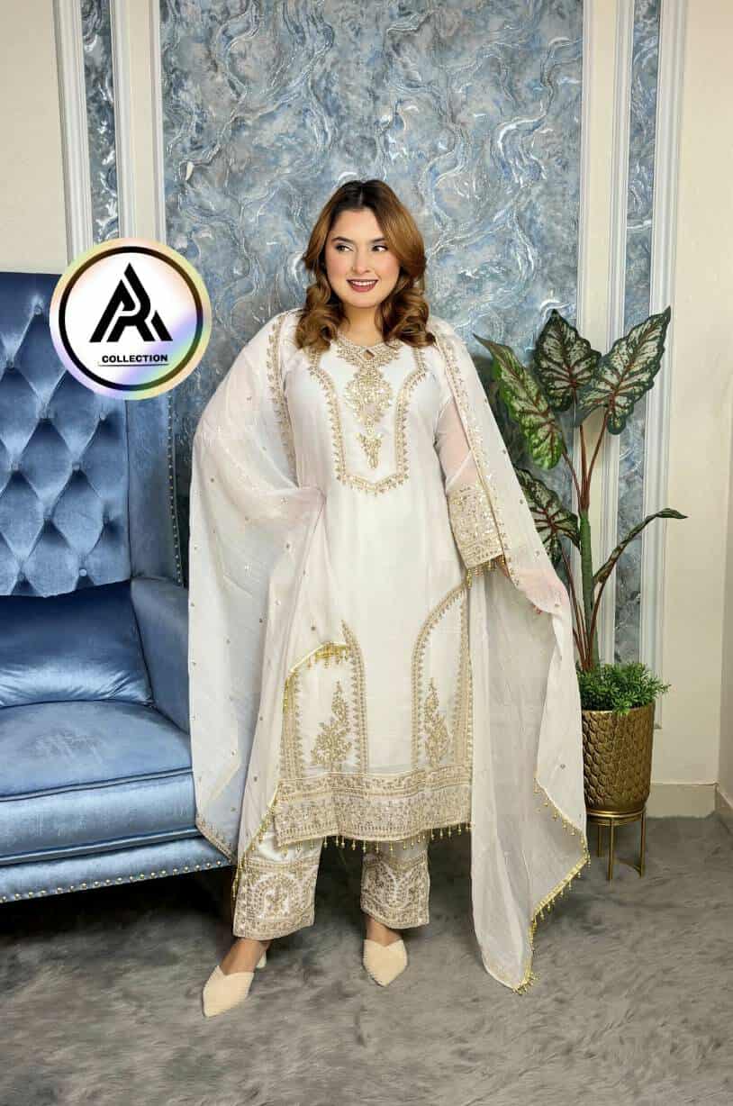 পাকিস্তানি ডিজাইন ফোর পিস সাদা বাহার টিস্যু ![]()